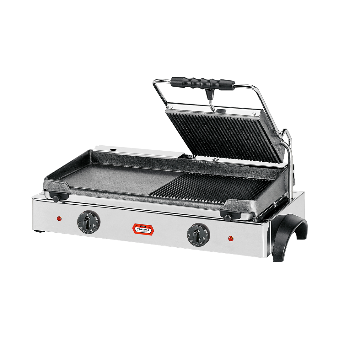 Tostadeira grelhador dupla de contato misto com tampa canelada
